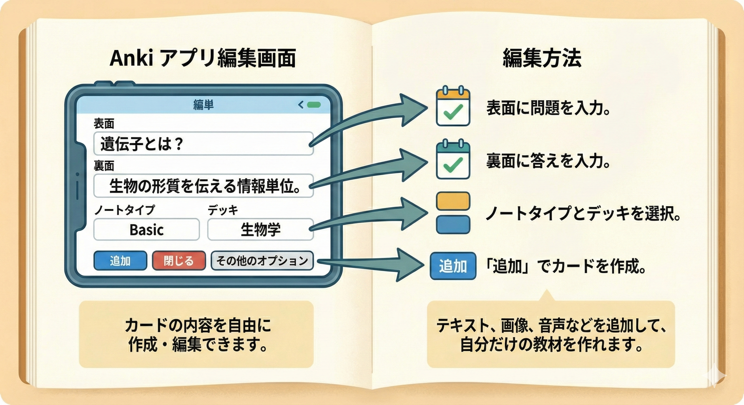 自分が苦手な問題を追加し、オリジナルのAnkiデッキを作成してください。